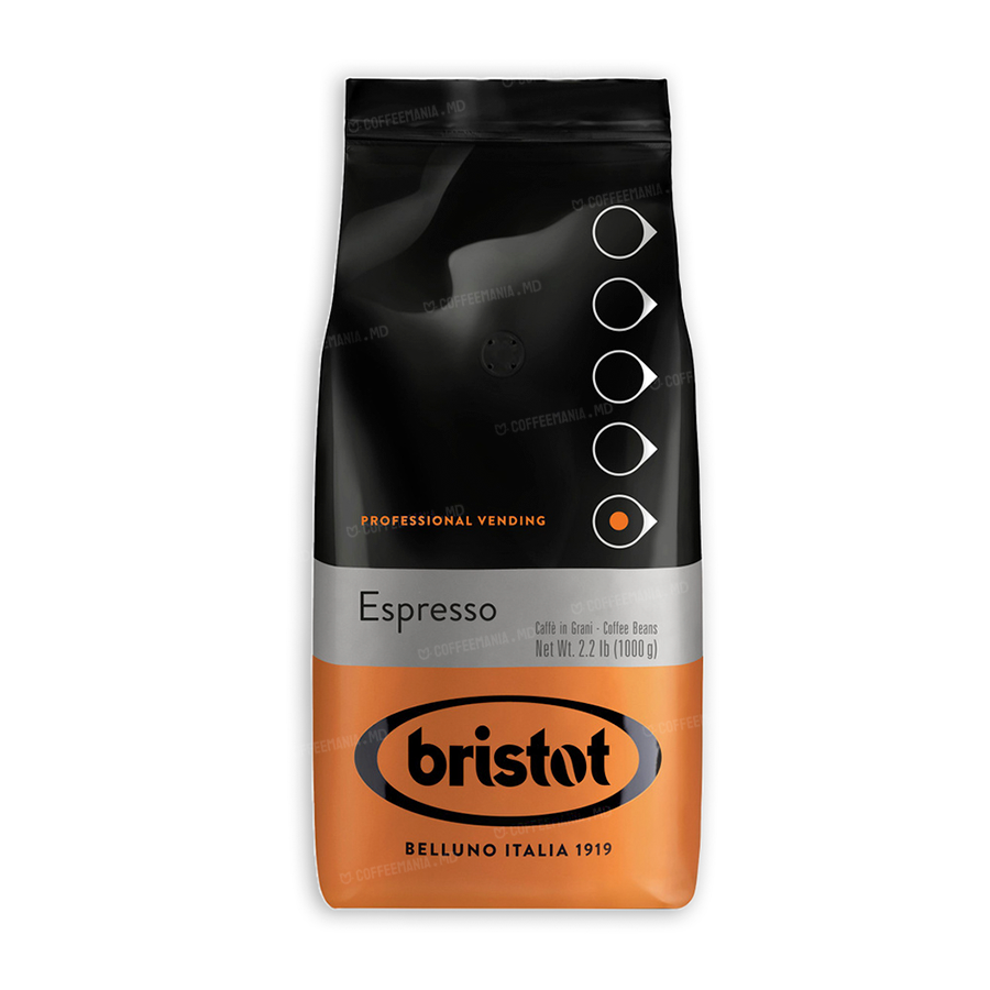 BRISTOT Espresso este o selecție de boabe de cafea de înaltă calitate, combinând 75% Arabica din Brazilia și 25% Robusta. Această combinație oferă un gust bogat și echilibrat, cu note de ciocolată și o aromă intensă. Ideal pentru prepararea unui espresso cremos și aromat.