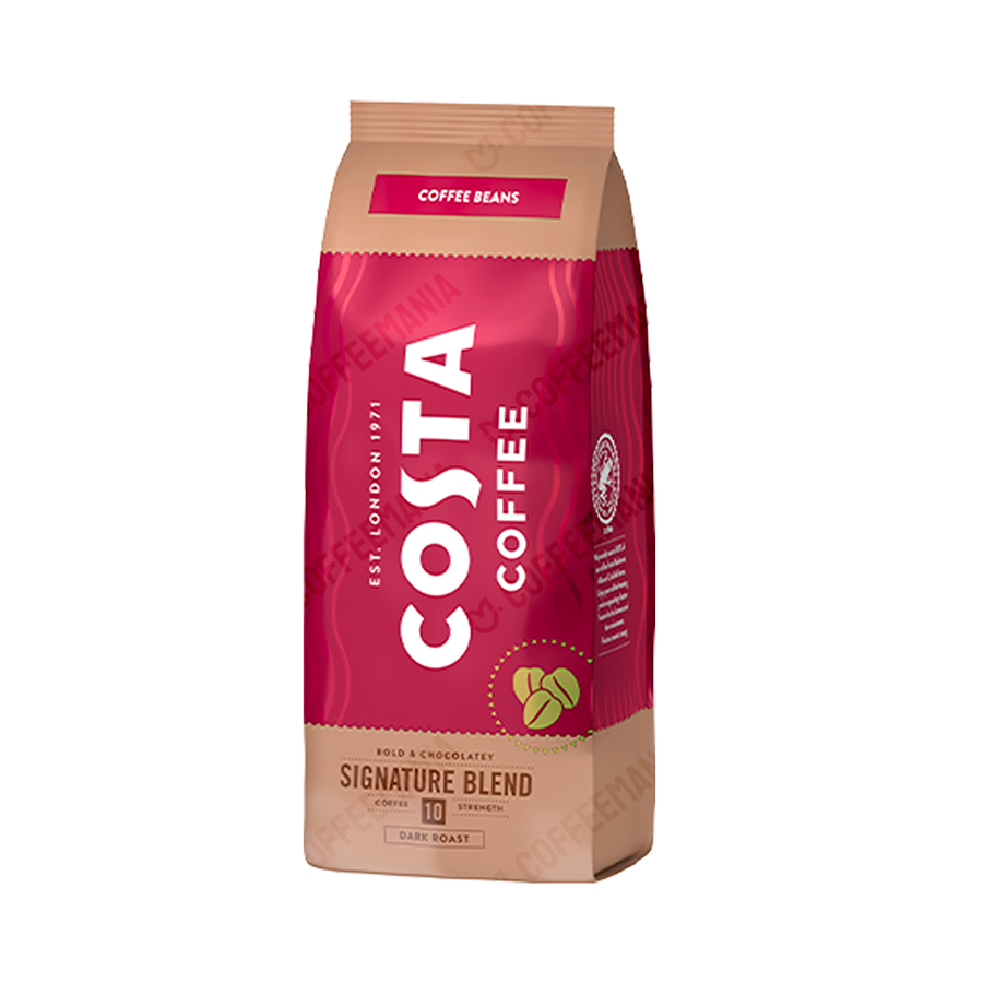 Costa Signature Dark Blend este o cafea boabe cu prăjire intensă, creată pentru a oferi un gust bogat și intens. Potrivită pentru espresso și alte tipuri de cafea neagră, aceasta se remarcă prin notele sale de ciocolată neagră și migdale prăjite. În combinație cu lapte, devine o băutură cu aromă de ciocolată caldă.