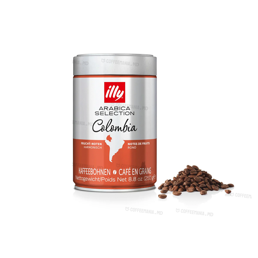 Cafea boabe ILLY Espresso Arabica Selection - Columbia 250g – 100% Arabica din Columbia, cu note de citrice și fructe roșii. Cultivată sustenabil în regiunile Andine, păstrată în conserve presurizate.