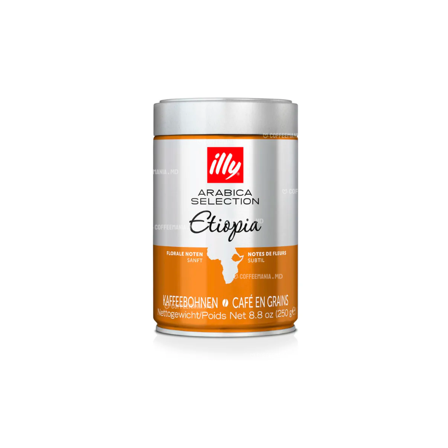 Cafea boabe ILLY Espresso Arabica Selection - Etiopia 250g – 100% Arabica din Etiopia, cu arome delicate de iasomie, floare de portocal și mușețel. Păstrată în conserve presurizate pentru prospețime de lungă durată.