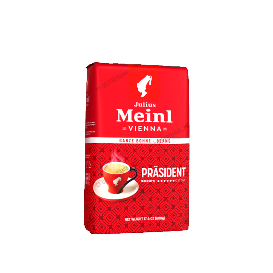 Julius Meinl Präsident este un amestec clasic cu o tradiție de peste 40 de ani, reprezentând esența culturii cafelei vieneze. Se remarcă printr-o prăjire tipic vieneză (medie), oferind un gust armonios, bine echilibrat între dulceață și amărăciune, fără note excesive de amăreală sau aciditate. Aroma sa proaspătă cu nuanțe de ciocolată și pâine prăjită completează experiența degustării.