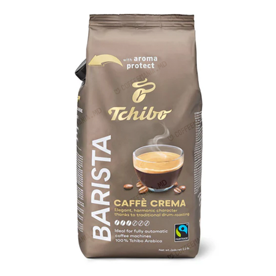 Cafea boabe Tchibo Barista Caffe Crema 1kg oferă un gust echilibrat, cu note de nuci și ciocolată, și o cremă densă, perfectă pentru espresso. Ideală pentru iubitorii de cafea de calitate.
