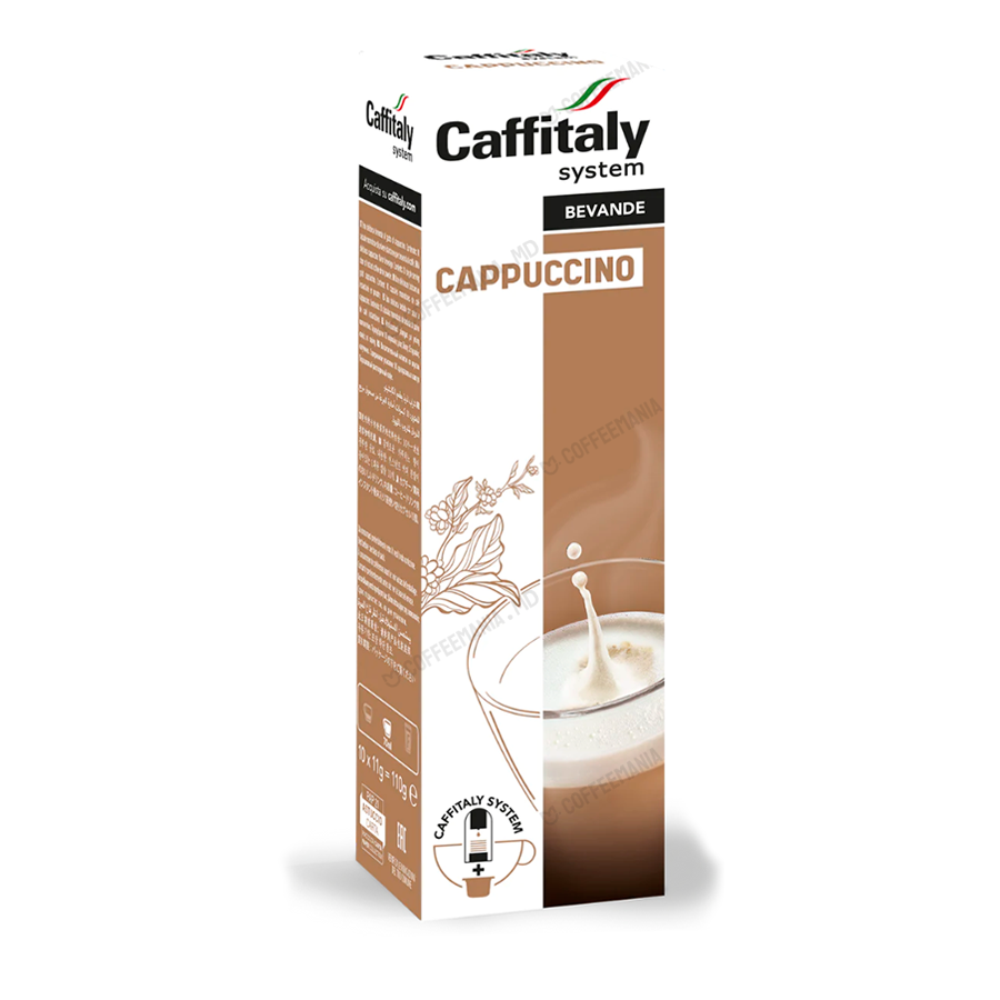 Cafea capsule CAFFITALY Cappuccino (10) – capsulele de cafea Caffitaly Cappuccino sunt ideale pentru un mic dejun savuros sau o pauză delicioasă în timpul zilei. Se pot savura în orice moment. Fiecare pachet conține 10 capsule porționate, fiecare conținând 11 grame de cafea prăjită măcinată cu lapte praf.