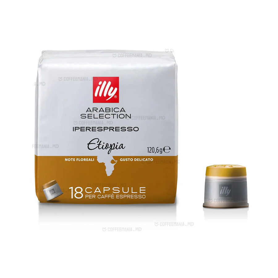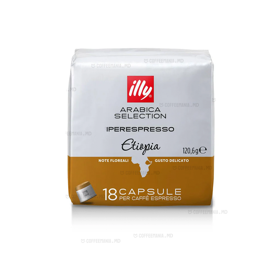Capsulele ILLY Arabica Selection Etiopia sunt compatibile cu sistemul IperEspresso și conțin 100% Arabica provenită din pădurile luxuriante ale Etiopiei, considerată leagănul cafelei. Această cafea se remarcă prin aroma sa delicată, cu note florale de iasomie, floare de portocal și mușețel.