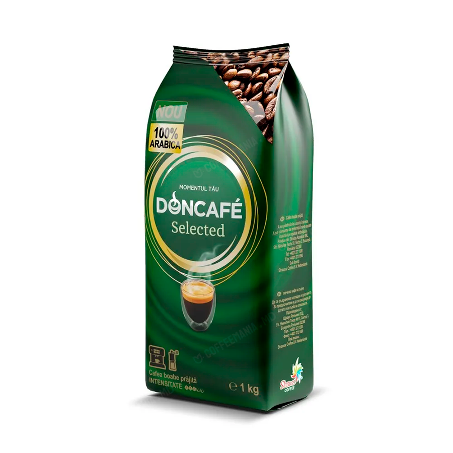 Cafea boabe Doncafe Selected 1kg – cafea 100% Arabica, prăjire medie, intensitate 3/5, ideală pentru espresso, cappuccino și Americano.