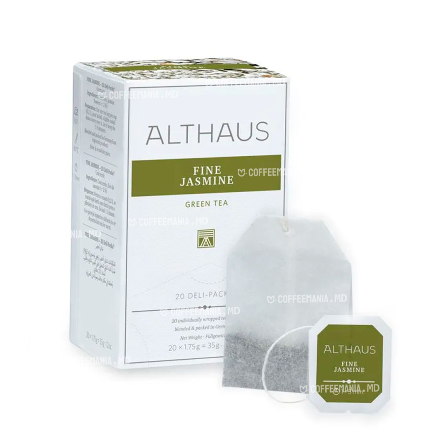 Althaus Fine Jasmin este un ceai verde rafinat, infuzat delicat cu flori de iasomie, oferind o experiență aromatică subtilă și elegantă. Gustul său proaspăt și ușor dulceag este completat de o notă florală fină, perfect echilibrată.